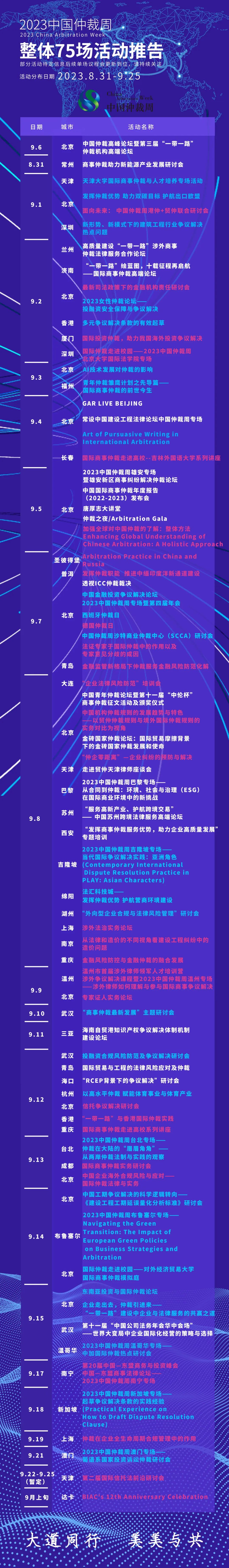 清風(fēng)生,白云遏,臨川筆,彭澤樽。截至今日2023中國仲裁周整體75場活動逐場推告如下:
