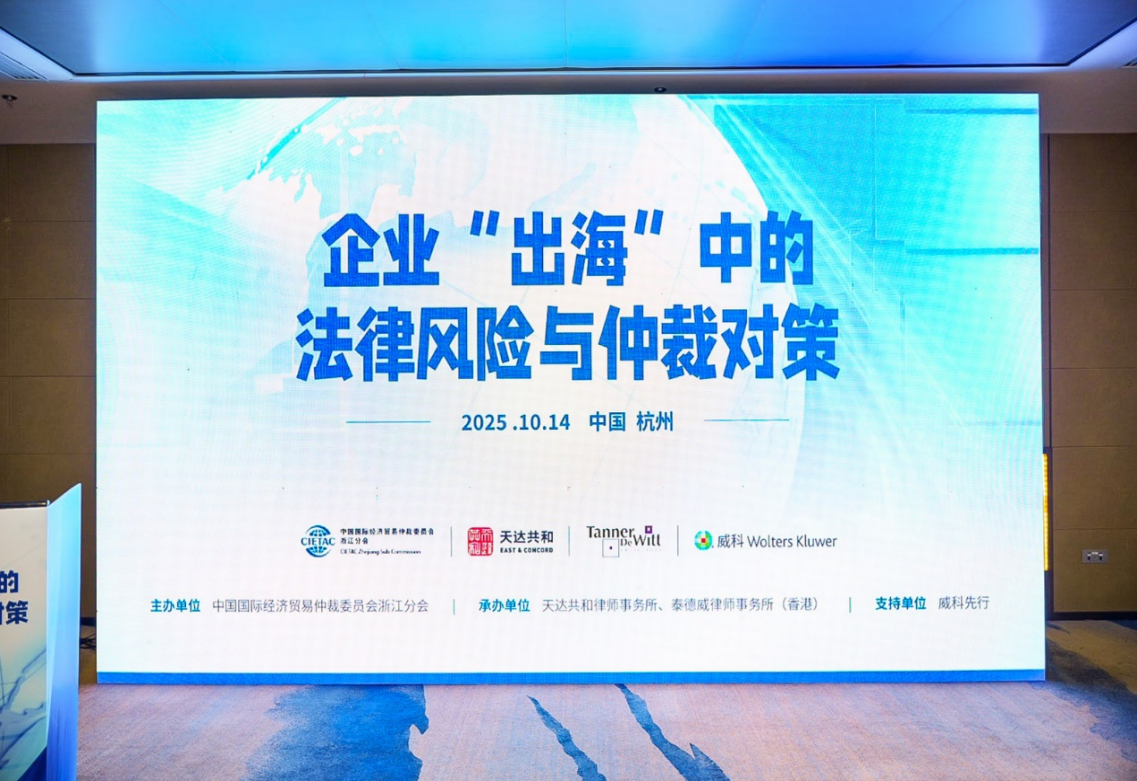 10月14日,由中國(guó)國(guó)際經(jīng)濟(jì)貿(mào)易仲裁委員會(huì)浙江分會(huì)(以下簡(jiǎn)稱貿(mào)仲浙江分會(huì))主辦的“企業(yè)‘出海’中的法律風(fēng)險(xiǎn)與仲裁對(duì)策”研討會(huì)在杭州成功舉辦。