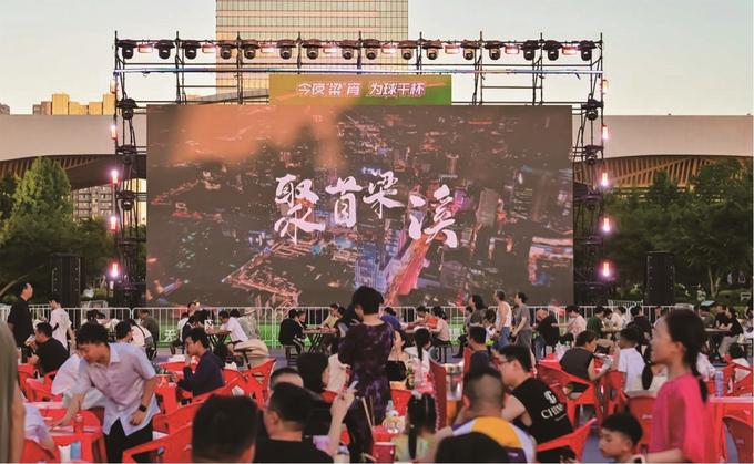 大屏幕前,人潮涌動(dòng),歡呼聲響徹云霄,在無錫江南古運(yùn)河畔,“蘇超”“第二現(xiàn)場(chǎng)”上演著堪比賽場(chǎng)的狂熱?!疤K超”的爆火,讓這個(gè)夏天格外熱鬧,梁溪多處化身足球狂歡勝地,惠山映月里祠田廣場(chǎng)、運(yùn)河匯水上舞臺(tái)、崇安寺二泉映月廣場(chǎng)、清名橋廣場(chǎng)……市民游客在大屏前暢聊戰(zhàn)術(shù),燒烤、啤酒、小龍蝦、各色小吃琳瑯滿目,夜色之下,巨幕與美食繪就動(dòng)感十足的消費(fèi)熱力圖。