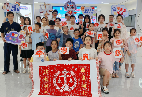 “法官教我怎么當(dāng)小法官,我還學(xué)會(huì)了剪‘法’字剪紙!原來法律可以這么有趣!”9歲的小學(xué)生蔡以諾在陳士海老師和大學(xué)生志愿者的指導(dǎo)下,順利將“守法”二字剪了出來。