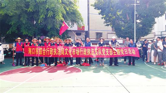 7月27日,??谑芯C合行政執(zhí)法局文化市場(chǎng)行政執(zhí)法支隊(duì)(下稱文化支隊(duì))全體黨員干部前往結(jié)對(duì)社區(qū)——美蘭區(qū)海甸街道福安社區(qū),開展愛國(guó)衛(wèi)生運(yùn)動(dòng),以實(shí)際行動(dòng)助力城市環(huán)境提升和防蚊滅蚊工作。