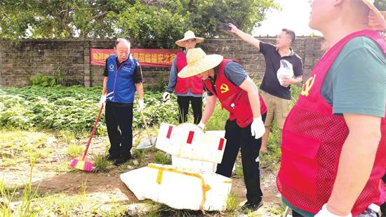 在清掃過程中,大家分工明確,密切配合。有的黨員干部負(fù)責(zé)清掃路面的落葉、紙屑和雜物,他們認(rèn)真細(xì)致,不放過任何一個(gè)角落,將街道打掃得干干凈凈;有的專注于清理衛(wèi)生死角,那些長(zhǎng)期堆積的垃圾和雜物在他們的努力下被——清除;還有的黨員干部幫助清理菜園里泡沫箱中的積水,消除蚊蟲滋生的環(huán)境。