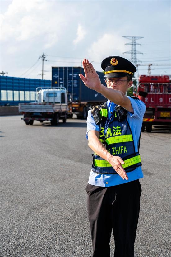 若遇上車流高峰,執(zhí)法隊員們便需鉚在灼熱的路面上:蹲守目標(biāo)、監(jiān)督稱重、緊盯卸貨環(huán)節(jié)。在烈日暴曬下,常常一站就是幾小時。汗水肆意流下,刺進(jìn)眼睛,也只能快速抬手抹一把。