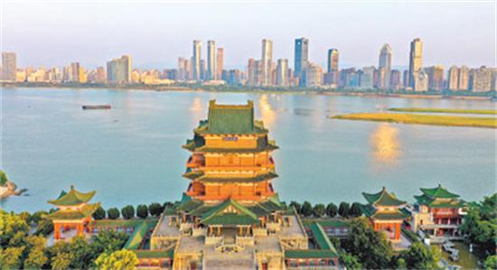“落霞與孤鶩齊飛,秋水共長天一色。”江西省南昌市滕王閣景區(qū)改造升級,一江兩岸風(fēng)景如畫。新華社記者 劉金海攝
