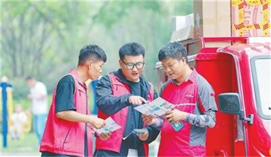 云南省曲靖市陸良縣同樂街道西華社區(qū),志愿者為快遞員送上法律服務(wù)。各地關(guān)心關(guān)愛新就業(yè)形態(tài)勞動者,通過送法律、送健康、送關(guān)愛等形式,提供多樣化暖心服務(wù)。楊文明 王勇攝影報(bào)道