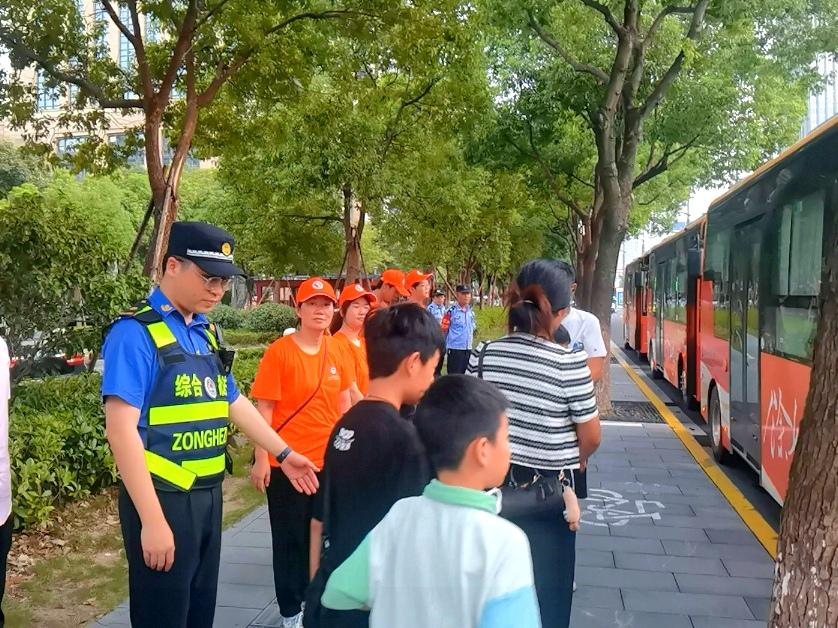 除了主賽場,分布在全城的多個轉播點同樣熱鬧。鳳山街道公共文化中心、陽明古鎮(zhèn)百姓大舞臺、蛇山公園……這些人氣聚集地,都能看到執(zhí)法隊隊員忙碌的身影。他們巡查周邊道路,勸離違規(guī)停車,規(guī)范共享單車停放,耐心為群眾指路,既保證了環(huán)境整潔,也提升了觀賽體驗。