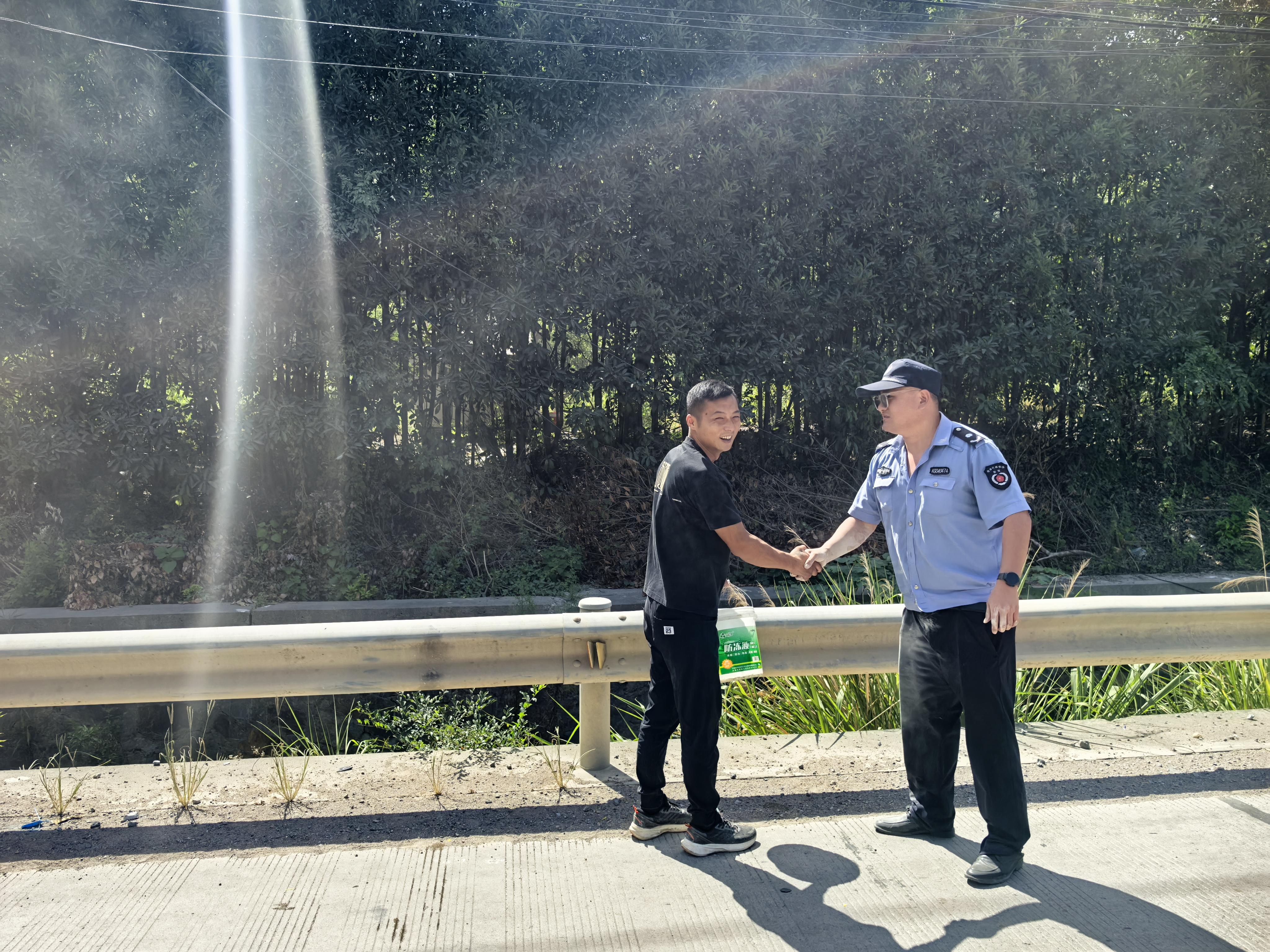 圖為司機(jī)感謝執(zhí)法人員的幫助
