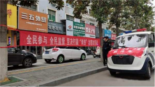 利用巡邏車、懸掛條幅開展多層次、多渠道、全方位宣傳“雙違”治理工作,加強(qiáng)正面宣傳引導(dǎo),形成強(qiáng)大輿論氛圍。同時(shí)通過走街串巷面對(duì)面開展政策解讀、法律宣傳、風(fēng)險(xiǎn)提示等,把政策法規(guī)向群眾講清楚、講明白,讓“雙違”治理工作入腦入心。