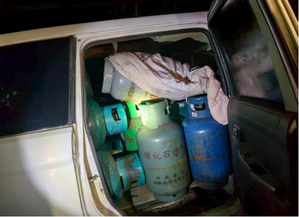 7月中旬,龍山鎮(zhèn)綜合行政執(zhí)法隊(duì)接到線索稱,該鎮(zhèn)金岙村附近深夜常有燃?xì)馄窟\(yùn)輸車往來。通過執(zhí)法隊(duì)與公安、基層網(wǎng)格隊(duì)伍的聯(lián)動(dòng)排查,最終在邱王村與金岙村交界的隱蔽處發(fā)現(xiàn)一個(gè)氣瓶倒灌窩點(diǎn)。現(xiàn)場堆放著275只大小規(guī)格不一的氣瓶,4套灌裝工具正灌裝著液化氣。