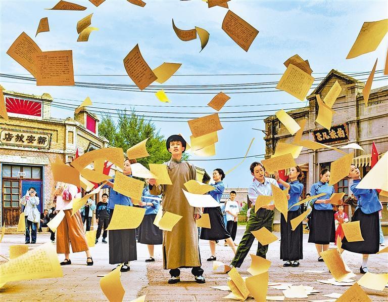 10月5日,內(nèi)蒙古自治區(qū)鄂爾多斯市伊金霍洛旗鄂爾多斯文化產(chǎn)業(yè)園影視拍攝基地,演員在沉浸式電影場(chǎng)景里表演,吸引眾多游客圍觀欣賞。王正攝(中經(jīng)視覺(jué))