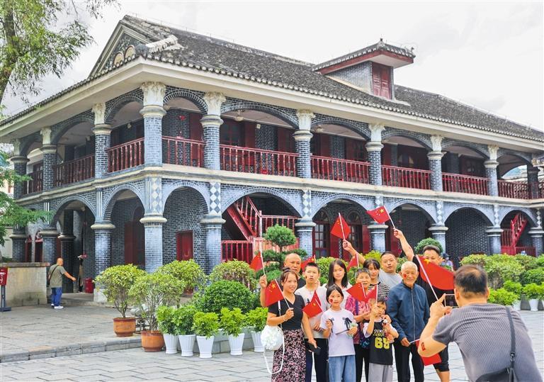 10月8日,貴州省遵義市遵義會(huì)議會(huì)址,游客在合影留念。國(guó)慶中秋假期,紅色旅游持續(xù)升溫。袁福洪攝(中經(jīng)視覺(jué))
