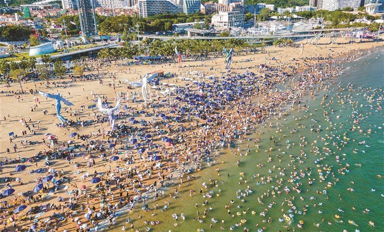 大梅沙海灘人潮人海,市民們紛紛前來抓住“最后的夏天”。