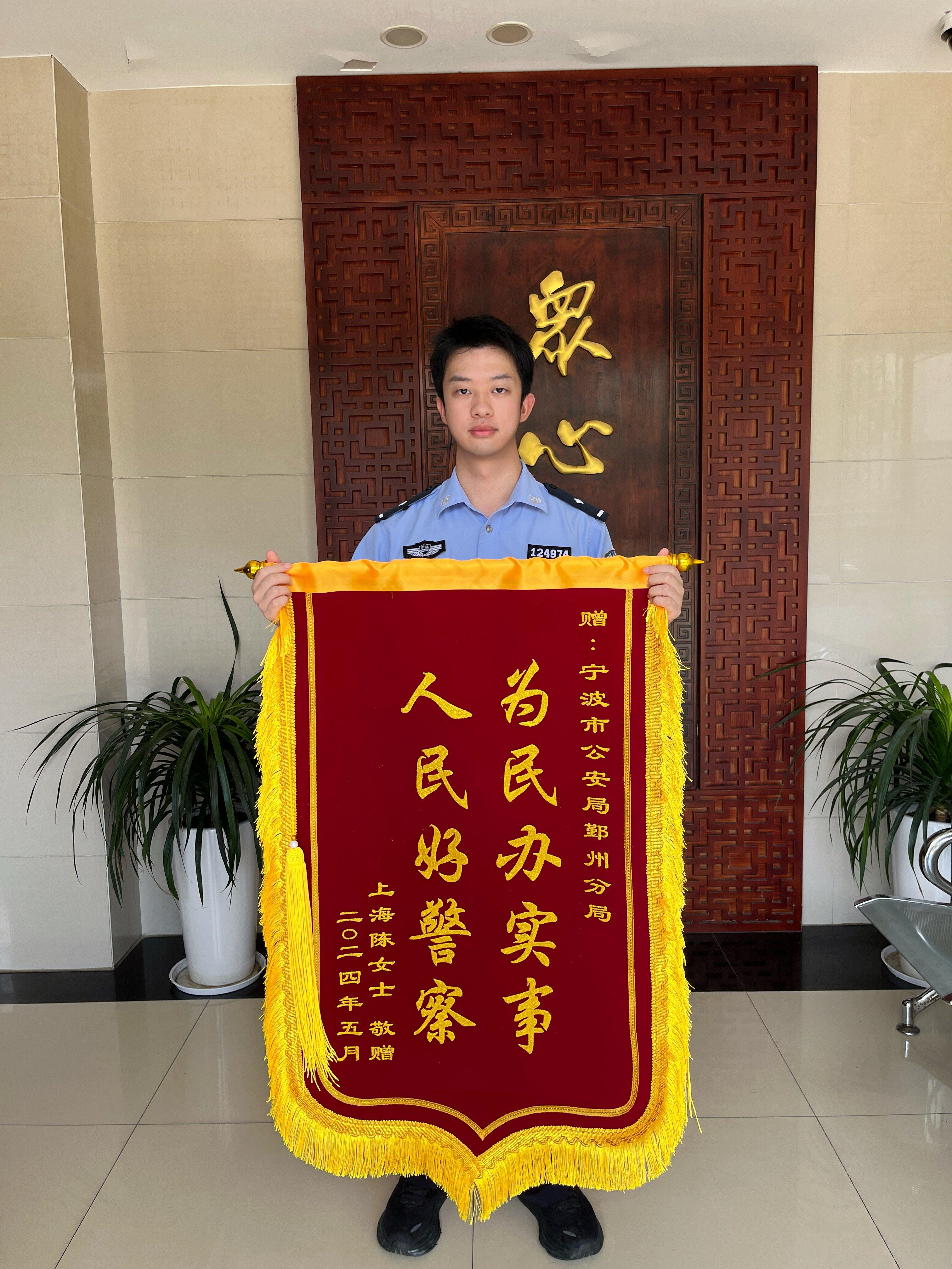 10月15日上午,浙江省寧波市公安局鄞州區(qū)分局下應(yīng)派出所收到了一份特殊的快遞。打開包裹,是一面印著“為民辦實(shí)事 人民好警察”字樣的錦旗,落款時(shí)間卻是2024年5月。這面跨越了近一年時(shí)光的錦旗,沒有喧囂的儀式,卻在秋日的晨光中,悄然承載起一段沉甸甸的警民情誼。