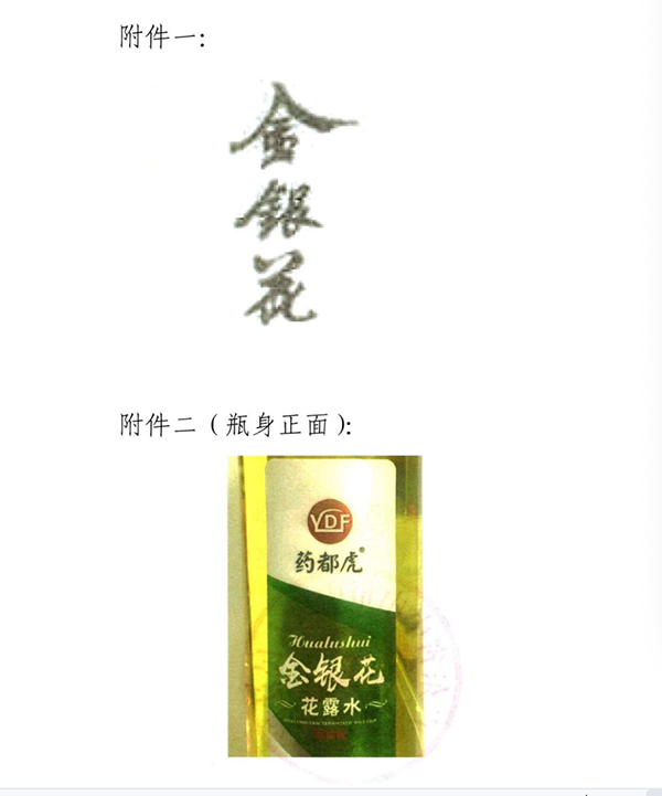 碧麗公司持有的603857號(hào)金銀花商標(biāo)(附件一)與佰泰公司藥都虎牌金銀花花露水瓶身