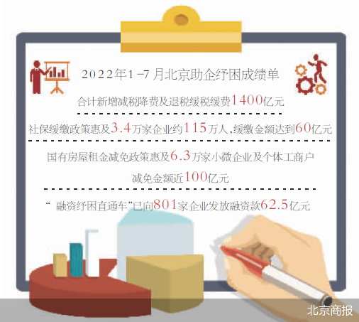“截至8月1日,北京今年合計新增減稅降費及退稅緩稅緩費1400億元;社保緩繳政策惠及3.4萬家企業(yè)約115萬人,緩繳金額達到60億元;國有房屋租金減免政策惠及6.3萬家小微企業(yè)及個體工商戶,減免金額近100億元;“融資紓困直通車”已向801家企業(yè)發(fā)放融資款62.5億元。”戴穎介紹道。