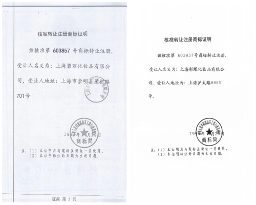 然而,詩妍公司向國家知識產權局調取原始檔案發(fā)現(xiàn),在碧麗公司受讓該商標之前,該商標是由上海彩蝶化妝品有限公司受讓取得,兩家公司地址不一樣。但受讓時間又是一致的?!帮@然,碧麗公司提供給法院的證據為假。申請人存在向法院提交虛假變造證據的不誠信行為?!壁w智慶說。