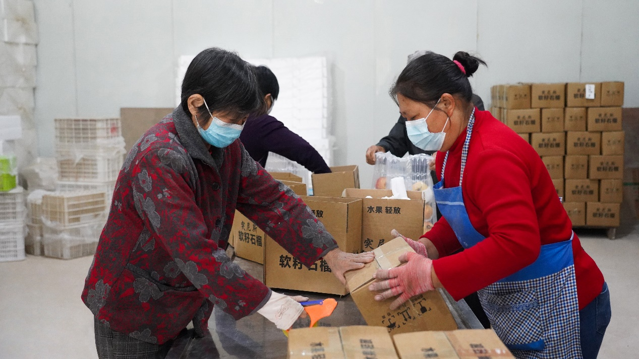 工人將挑選出的高品質(zhì)石榴打包、裝箱,準(zhǔn)備發(fā)送到消費(fèi)者手中。