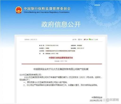中國銀保監(jiān)會關(guān)于北大方正集團(tuán)財(cái)務(wù)有限公司破產(chǎn)的批復(fù)