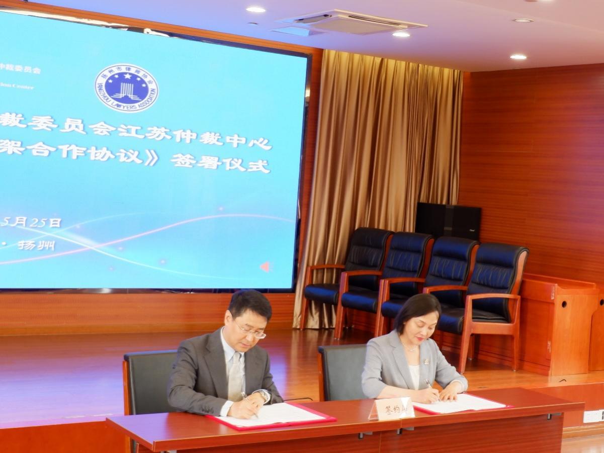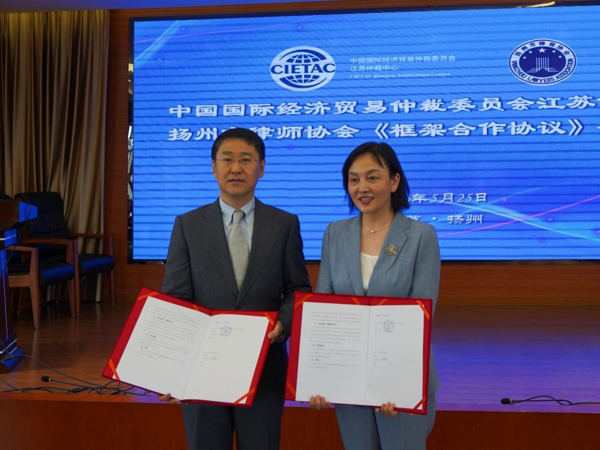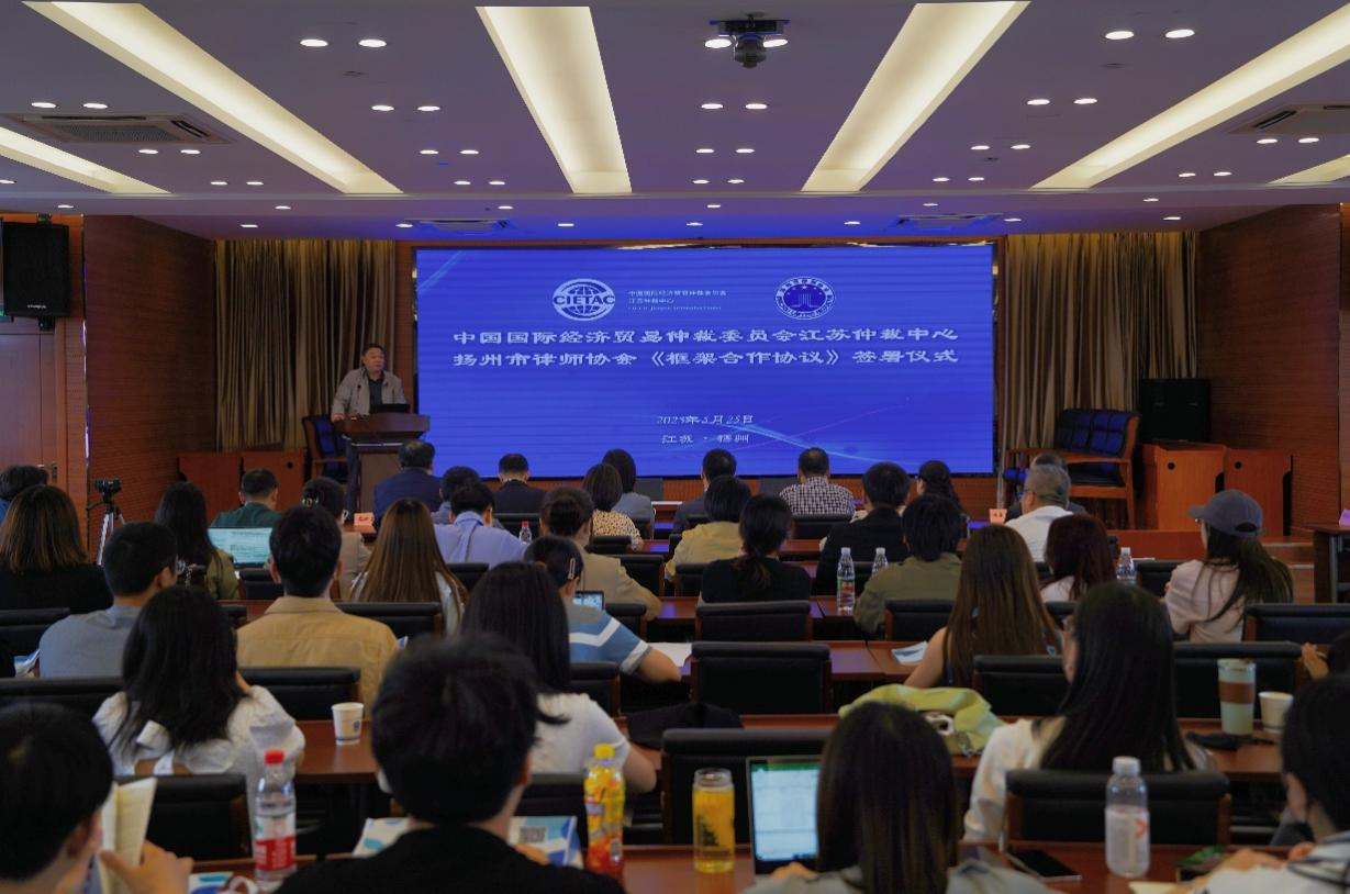 2023年5月25日下午,中國(guó)國(guó)際經(jīng)濟(jì)貿(mào)易仲裁委員會(huì)江蘇仲裁中心(以下簡(jiǎn)稱“貿(mào)仲江蘇中心”)與揚(yáng)州市律師協(xié)會(huì)(以下簡(jiǎn)稱“揚(yáng)州律協(xié)”)在揚(yáng)州簽署《框架合作協(xié)議》。合作協(xié)議簽署儀式由揚(yáng)州律協(xié)仲裁法律業(yè)務(wù)委員會(huì)主任包振宇主持,貿(mào)仲仲裁院副院長(zhǎng)兼貿(mào)仲江蘇中心秘書長(zhǎng)谷巖、揚(yáng)州律協(xié)副會(huì)長(zhǎng)蔣敏代表雙方在合作協(xié)議上簽字。簽約儀式后,雙方舉辦了“商事爭(zhēng)議多元化解決的實(shí)踐與展望”專題研討會(huì)。