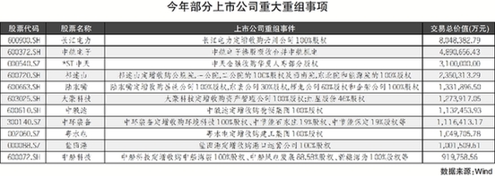 從并購重組參與方來看,今年國企上市公司的并購重組表現(xiàn)尤其活躍,且交易價值不菲。今年披露的12個交易總價值過百億元的重大重組事件中,有11個事件參與方為國企上市公司。其中,長江電力定增收購云川公司100%股權(quán)事件,交易總價值達804.84億元,位居首位。