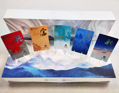 在外觀設計上,“強富美高新”硬錢包簡潔大方、主題突出,每套硬錢包由五張標準卡片式硬錢包組成,分別取名“強、富、美、高、新”,體現(xiàn)了新時代江蘇發(fā)展的總目標定位。其中,“強”主題硬錢包采用中國風設計,體現(xiàn)江蘇經(jīng)濟高質(zhì)量發(fā)展,氣勢如虹;“富”主題硬錢包采用南京云錦作為底紋,在花叢中呈現(xiàn)城市樣貌,體現(xiàn)人民群眾獲得感、幸福感、安全感不斷增強;“美”主題硬錢包采用典雅的中國水彩風設計,綠色潑墨漸變體現(xiàn)江蘇綠水青山的生態(tài)環(huán)境建設成果,融入了省會南京的玄武門、銀杏葉、吉祥飛鳥等元素,寓意江南魚米之鄉(xiāng)的秀美風光;“高”主題硬錢包采用深藍色作為設計主色,鋼筆的筆尖與文化和文明相呼應,體現(xiàn)江蘇的社會文化程度高;“新”主題硬錢包采用新中式風格,以江南建筑輪廓融入更多現(xiàn)代的審美,寓意堅持把科技創(chuàng)新作為經(jīng)濟社會發(fā)展的第一動力。