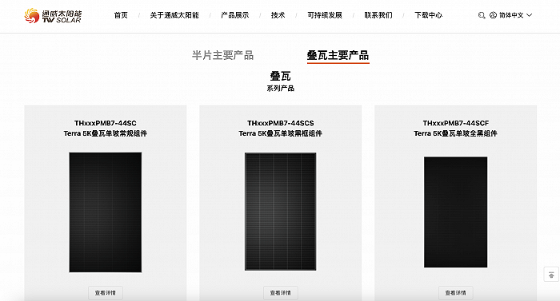 界面新聞注意到,通威太陽能官網(wǎng)顯示了七款疊瓦主要產(chǎn)品。在去年年報(bào)中,通威股份在組件部分提到,海外市場(chǎng)重點(diǎn)聚焦歐洲、亞太、南美等終端市場(chǎng),利用各版型疊瓦、半片產(chǎn)品“矩陣”,滿足海外客戶對(duì)高效組件的差異化需求。