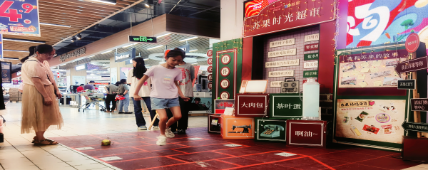 近日,“蘇果時光超市”主題打卡點亮相華潤蘇果清涼門店,給大家?guī)硪粨堋盎貞洑ⅰ薄,F(xiàn)場可以看到,從大家耳熟能詳?shù)囊慌祥T店名婁子巷店、北祖師庵店,到上世紀80、90年代記憶深處的蘇果大肉包、北冰洋汽水、娃哈哈AD鈣奶。懷舊復(fù)古的雙卡收錄機、老式電視機、熱水瓶等經(jīng)典元素的組合,讓人仿佛穿越了“時光隧道”。在“我和蘇果的故事”模塊,消費者的美好記憶化作便利貼定格在現(xiàn)場,此外還有“丟沙包”“跳房子”等互動抽獎小游戲,進一步強化了“時光”這個溫暖、美好的概念,帶來一撥濃濃的“回憶殺”,吸引不少消費者拍照打卡。
