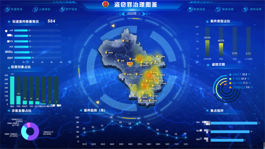 在該界面可以查看各街鎮(zhèn)盜竊罪案件數(shù)量情況、案件類型情況、案件趨勢、涉案金額情況、盜竊次數(shù)情況、犯罪對象情況及該類案件高發(fā)重點場所等。