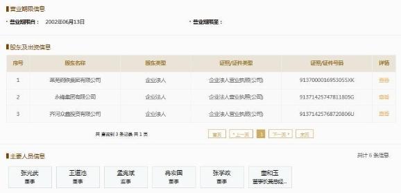 國(guó)家企業(yè)信用信息公示系統(tǒng)顯示,山東萊鋼永鋒鋼鐵有限公司成立于2002年,注冊(cè)資本3000006萬(wàn)元人民幣,法定代表人董和玉,三家股東為萊蕪鋼鐵集團(tuán)有限公司、永鋒集團(tuán)有限公司及齊河眾鑫投資有限公司。