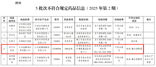 4月7日,江蘇省藥品監(jiān)督管理局發(fā)布關于江蘇省2025年第2期藥品質(zhì)量的通告(2025年 第2號)顯示,經(jīng)常州市食品藥品纖維質(zhì)量監(jiān)督檢驗中心檢驗,迪賽諾制藥生產(chǎn)的爐甘石洗劑(藥品規(guī)格:100ml/瓶、批號:47240704)不符合規(guī)定,藥品不合格項目為微生物限度,檢驗依據(jù)為國家藥品監(jiān)督管理局標準WS1-XG-012-2020。