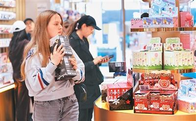 在重慶市渝中區(qū)來福士商場的泡泡瑪特門店,市民選購相關產品。?孫凱芳攝(人民圖片)