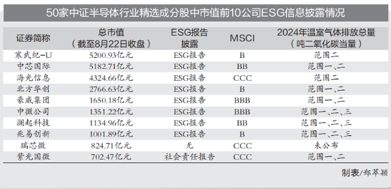 近日,伴隨著新一代大語言模型DeepSeek-V3.1的發(fā)布,市場對半導(dǎo)體行業(yè)的關(guān)注度進(jìn)一步提升??沙掷m(xù)發(fā)展關(guān)乎半導(dǎo)體行業(yè)長期競爭力,中國證券報記者梳理了50家中證半導(dǎo)體行業(yè)精選成分股的ESG信息披露情況發(fā)現(xiàn),ESG相關(guān)報告(包括可持續(xù)發(fā)展報告、社會責(zé)任報告)披露率達(dá)66%;市值排名靠前公司ESG評級表現(xiàn)更優(yōu)。對芯片設(shè)計與設(shè)備制造環(huán)節(jié)而言,科技創(chuàng)新與知識產(chǎn)權(quán)保護(hù)、數(shù)據(jù)安全與隱私保護(hù)、員工培養(yǎng)與成長等公司治理類和社會類議題尤為重要。