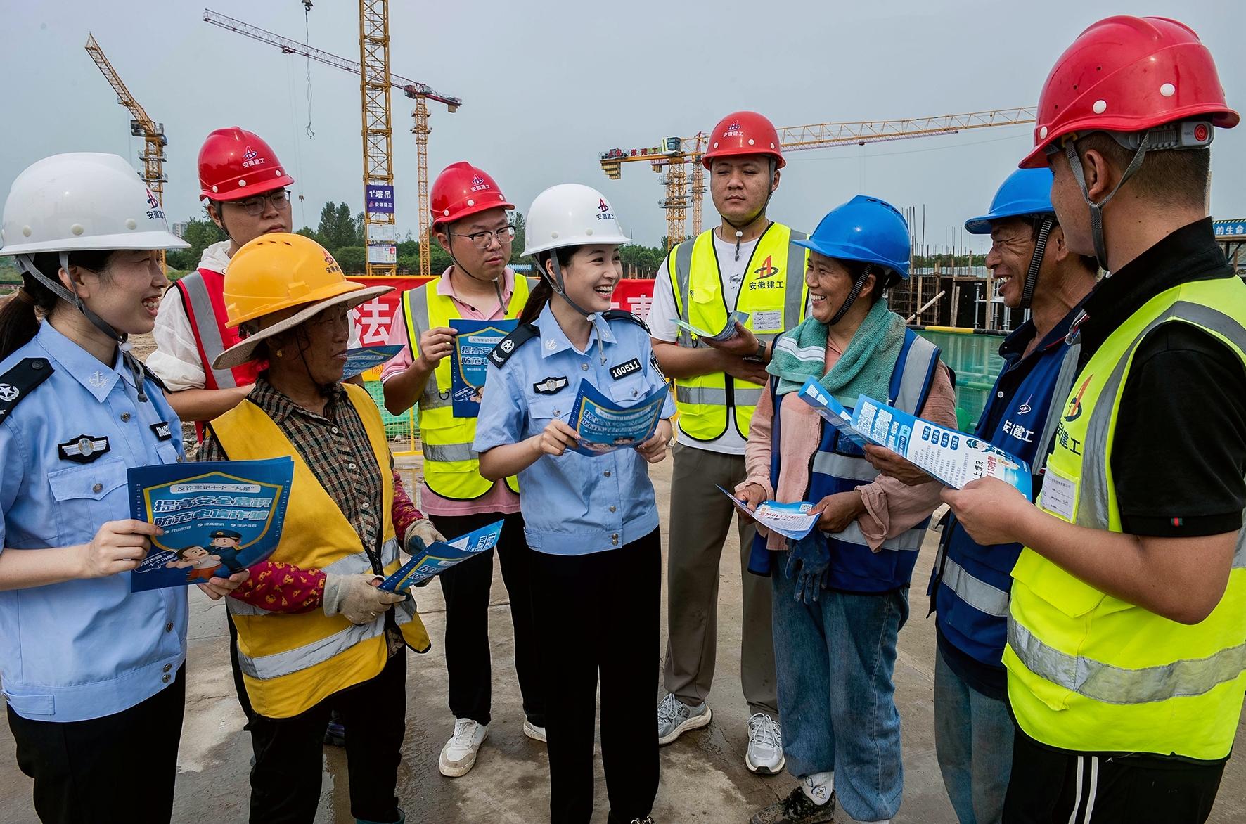 8月19日,安徽省含山縣司法局、縣人社局勞動(dòng)保障維權(quán)調(diào)處中心聯(lián)合開展“送法進(jìn)工地 普法惠民生”宣傳活動(dòng),向農(nóng)民工、項(xiàng)目管理人員宣講保障農(nóng)民工工資支付條例、安全生產(chǎn)法、反電信網(wǎng)絡(luò)詐騙法等法律法規(guī)知識(shí)。