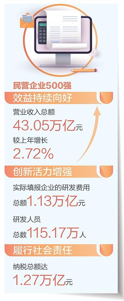 面對外部壓力加大、內部困難增多的復雜嚴峻形勢,民營企業(yè)500強堅定不移走高質量發(fā)展之路,專心致志做強做優(yōu)做大企業(yè),整體保持穩(wěn)中有進、穩(wěn)中向好的態(tài)勢,企業(yè)效益和核心競爭力進一步增強。