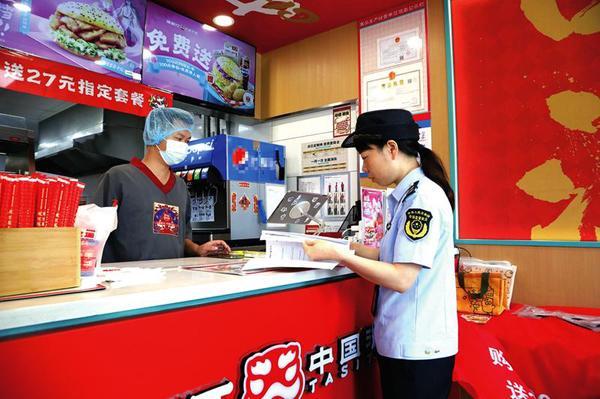 執(zhí)法人員檢查漢堡店臺(tái)賬記錄。通訊員何正君 攝