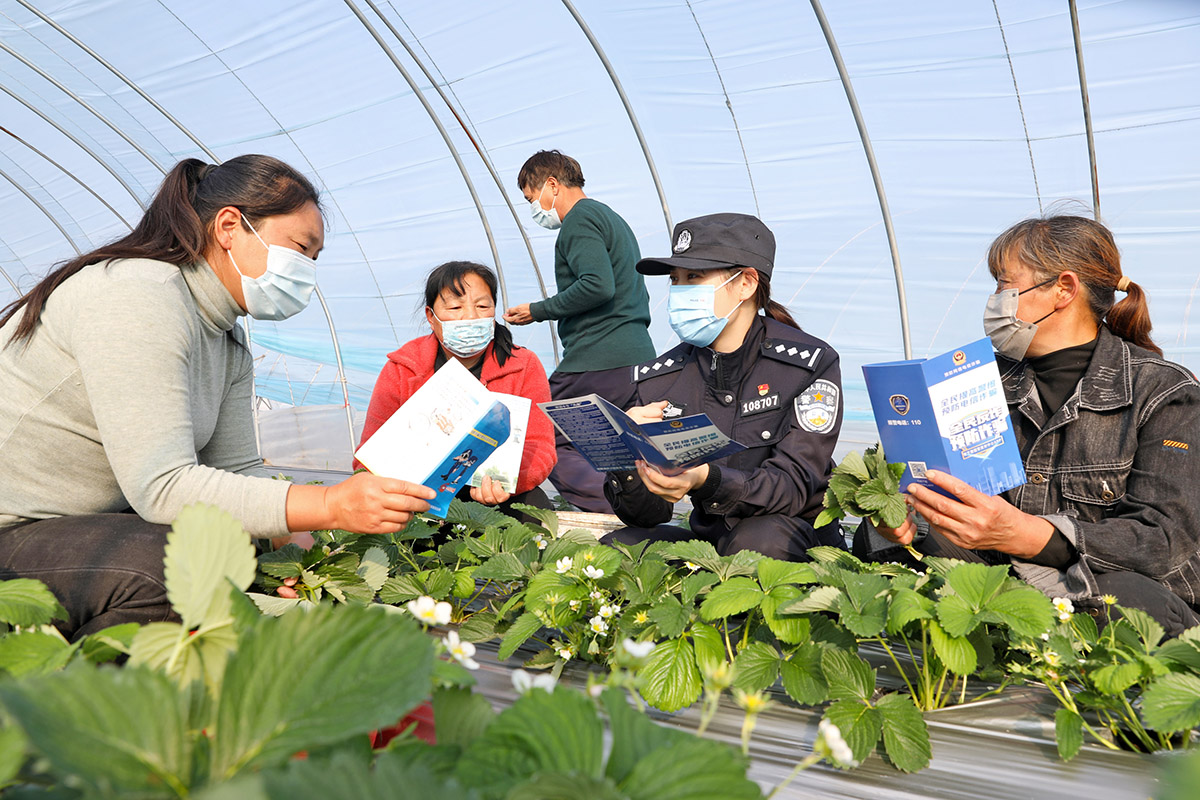 圖為黨員民警向村民宣傳反詐知識(shí),同時(shí)聽取他們對(duì)公安工作的意見建議。