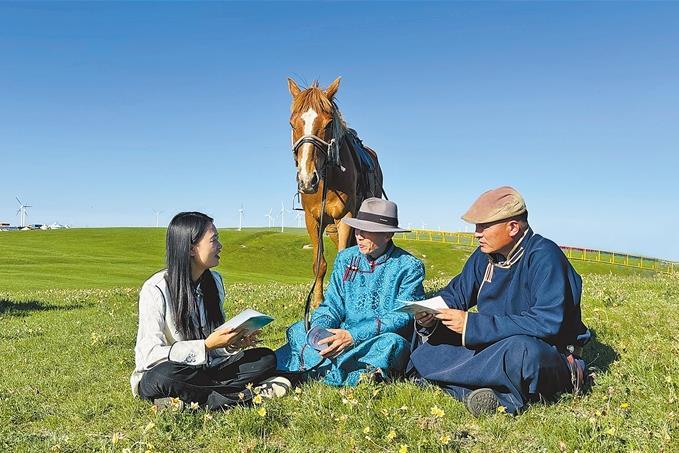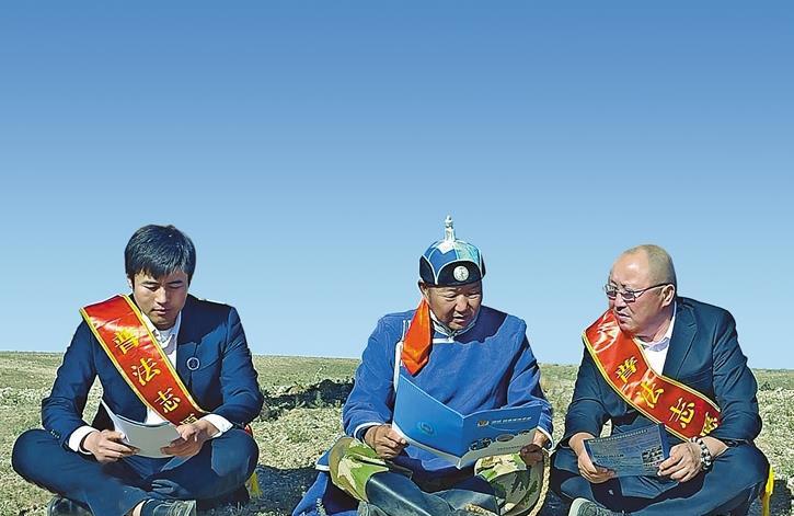 占淑瑩律師(左一)在輝騰錫勒草原為牧民講解法律知識。