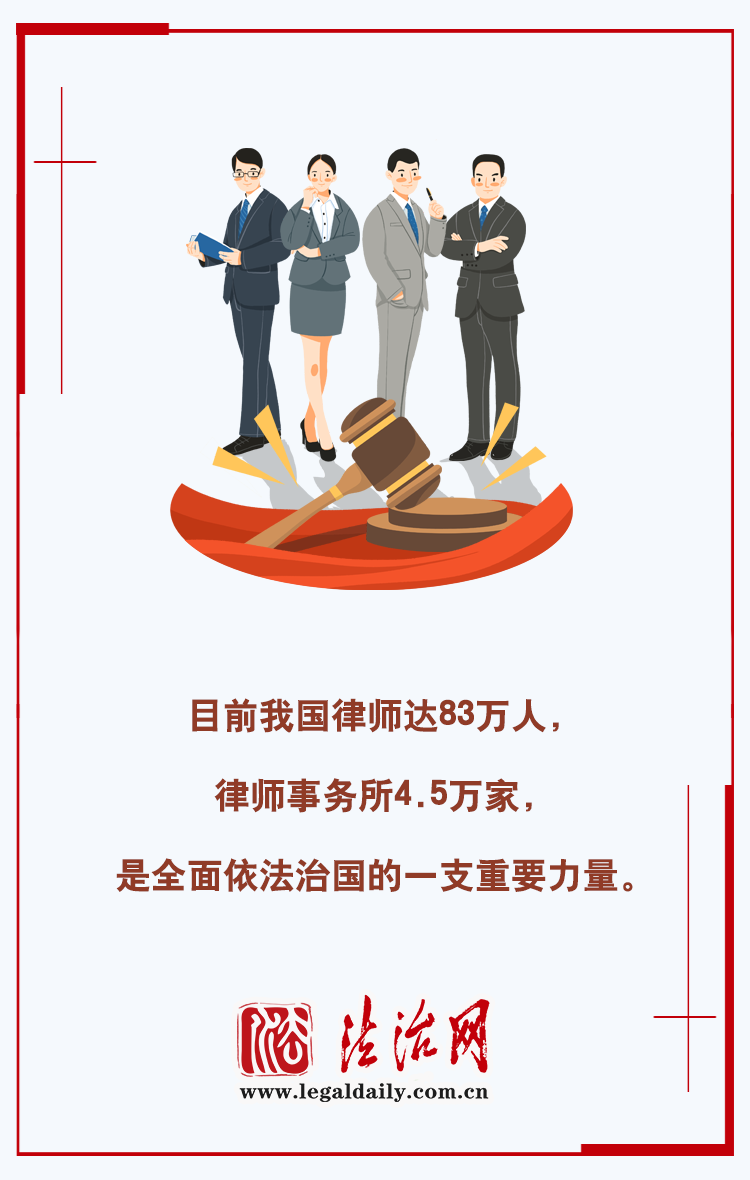 目前,我國律師達(dá)83萬人,律師事務(wù)所4.5萬家,是全面依法治國的一支重要力量。“十四五”期間,司法部在引導(dǎo)好、管理好、服務(wù)好律師隊伍上持續(xù)采取務(wù)實(shí)措施,團(tuán)結(jié)凝聚廣大律師充分發(fā)揮職能作用。律師工作哪些亮點(diǎn)不容錯過?一圖解鎖!