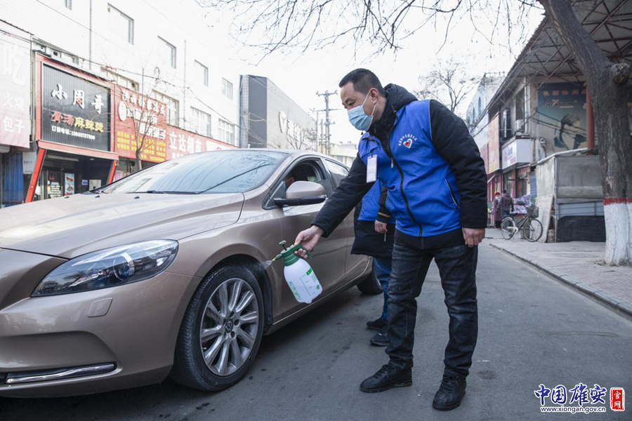 工作人員對(duì)過(guò)往車輛進(jìn)行消毒。中國(guó)雄安官網(wǎng)記者牛思佳 攝