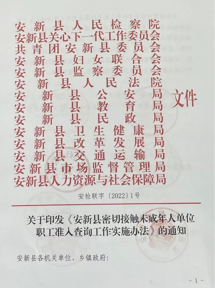 今年3月初,安新縣檢察院聯(lián)合縣關(guān)工委、公安局等13家單位召開《安新縣密切接觸未成年人單位職工準(zhǔn)入查詢工作實(shí)施辦法》(以下簡(jiǎn)稱《辦法》)會(huì)簽單位聯(lián)席會(huì)。3月中旬,該《辦法》印發(fā)施行后,要求密切接觸未成年人單位新招聘職工入職前必須查詢,在職員工每年定期查詢,全縣15個(gè)密切接觸未成年人行業(yè)中的6691名職工進(jìn)行了準(zhǔn)入查詢。截至目前,排查出2起查詢存在不良記錄情況,均已整改到位。