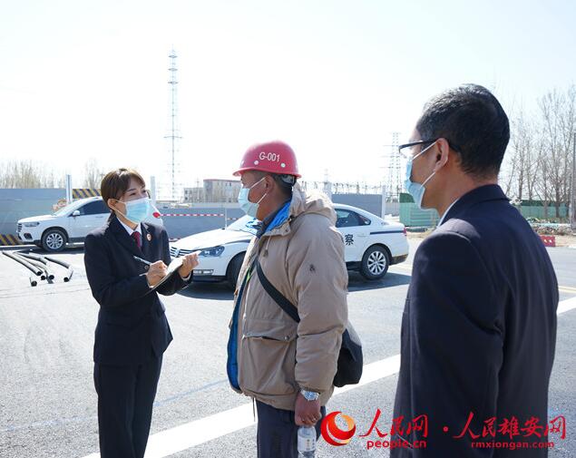 容城縣人民檢察院工作人員前往施工現(xiàn)場了解農(nóng)民工工資發(fā)放情況。李紫宣攝