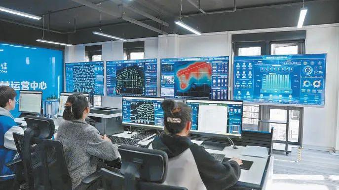 工作人員在容東片區(qū)數(shù)字道路智慧運(yùn)營中心監(jiān)測數(shù)據(jù)。李澤凱 攝