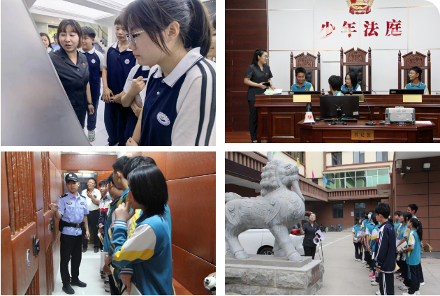 活動分為兩個部分。首先由干警帶領同學們參觀法院的基本設施。同學們依次體驗了訴訟服務中心的“一站式”訴訟服務,深入感受“未成年人心理疏導室”和“少年法庭”營造的溫馨、和諧的審判環(huán)境,認真觀察了羈押室、囚車以及各種警用裝備的精妙設計,“沉浸式”體驗了法院的工作氛圍。