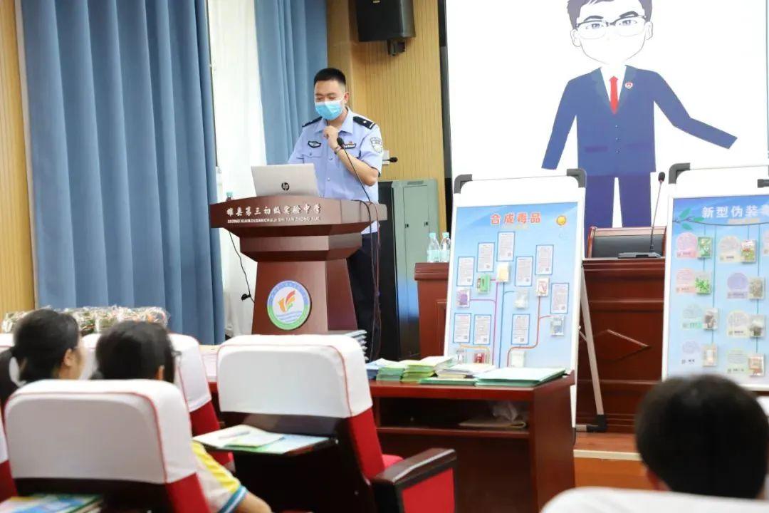 在朱各莊第二中心小學(xué)和第三初級實驗中學(xué)的禁毒宣傳課堂上,雄縣公安局禁毒大隊民警向?qū)W生播放禁毒警示片,講解真實吸毒、販毒的慘痛案例,并且通過互動問答等方式,告誡同學(xué)們莫沾毒品、莫交毒友。