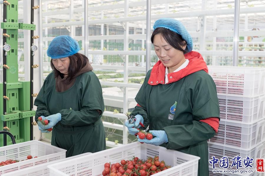科技園的工作人員正在檢查番茄成熟度。中國雄安官網(wǎng)李鑫 攝