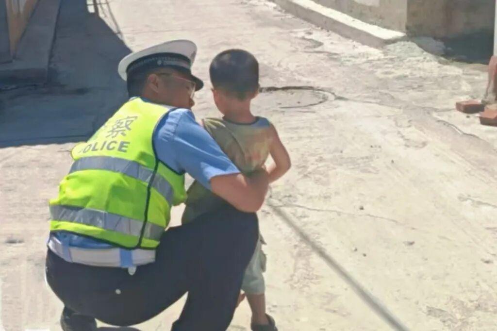 9月6日上午11時許,雄縣主城區(qū)警格四的執(zhí)勤警力正在五道口開展日常巡邏。彼時街頭秩序井然,一陣稚嫩的哭聲突然打破平靜。執(zhí)勤隊員循聲望去,發(fā)現(xiàn)一名約3歲的男童獨自在馬路上來回踱步,小嘴微癟不停抽噎,每當有車輛駛過,便會本能地往后退縮,身處位置十分危險。