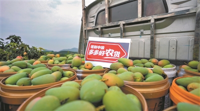 在“尋鮮中國(guó) 多多好農(nóng)貨”項(xiàng)目支持下裝車待售的芒果