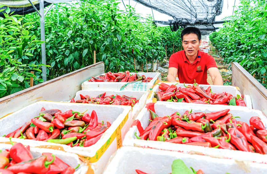 據(jù)介紹,在豐收季節(jié),彩椒產業(yè)基地每天聘請60多個村民采摘、分級、加工打包銷往湖南、上海、浙江等地,預計每年可采摘約160萬斤,產值約900萬元,為群眾增加務工收入150余萬元和增加村級集體經濟2.8萬元。