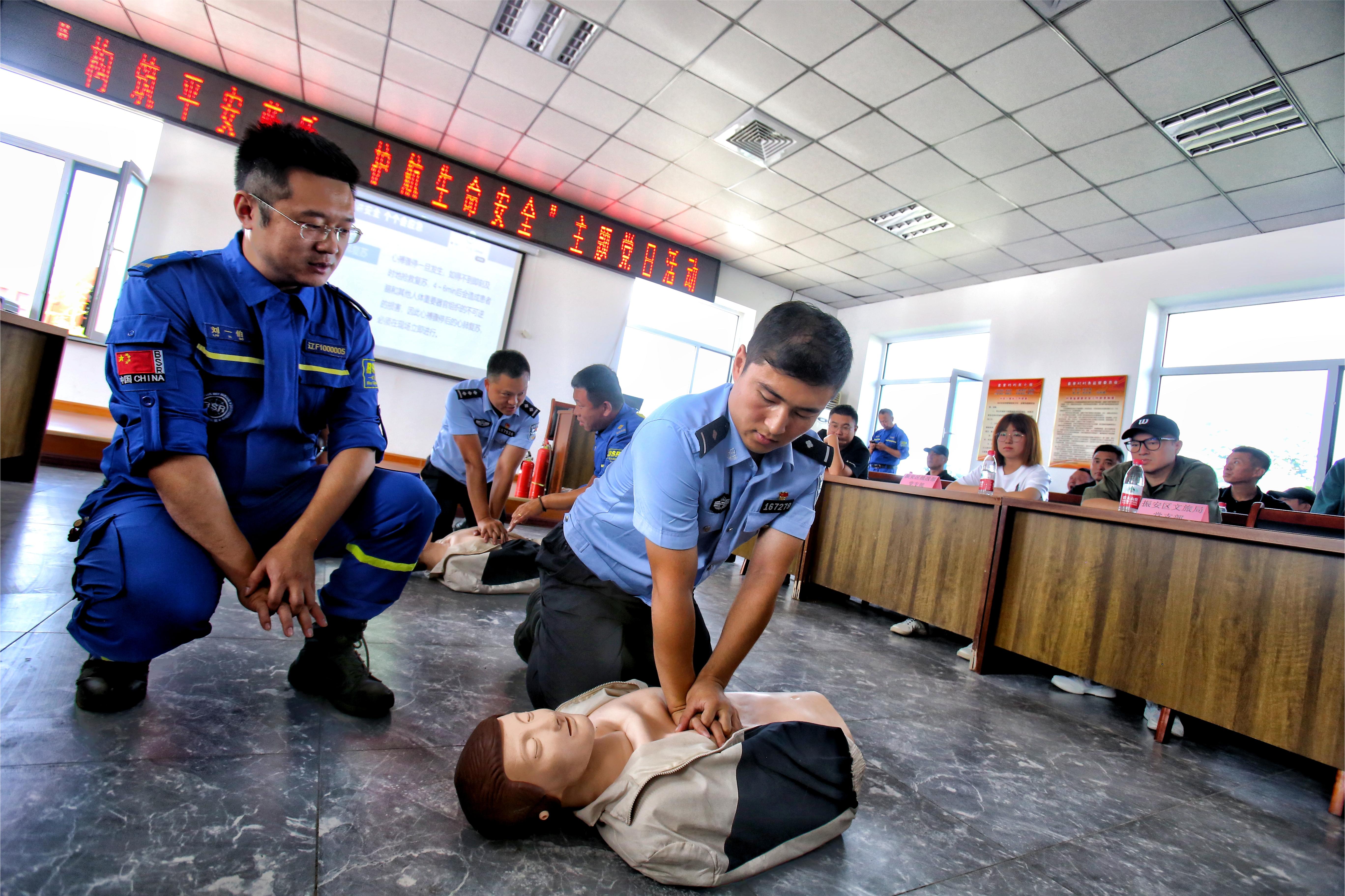 簽約儀式后,丹東藍天救援隊現(xiàn)場為120余名骨干黨員開展了應(yīng)急救護知識專題培訓(xùn),隊員們通過理論知識講解、現(xiàn)場演示、互動教學(xué)等方式,以生活中發(fā)生頻率較高的突發(fā)意外為例,生動形象地講解了腦梗、心梗、昏迷、休克、中暑、低血糖等急性癥狀發(fā)作時的急救措施,重點對腹部沖擊法心肺復(fù)蘇術(shù)、止血包扎、溺水、抽筋、氣道異物梗阻的搶救技巧,以及心臟按壓的基本原理和操作流程等內(nèi)容進行講解,并通過互動式實操演練,現(xiàn)場指導(dǎo)要領(lǐng)、糾正方法,確保在場的民警和群眾真正掌握急救技能。