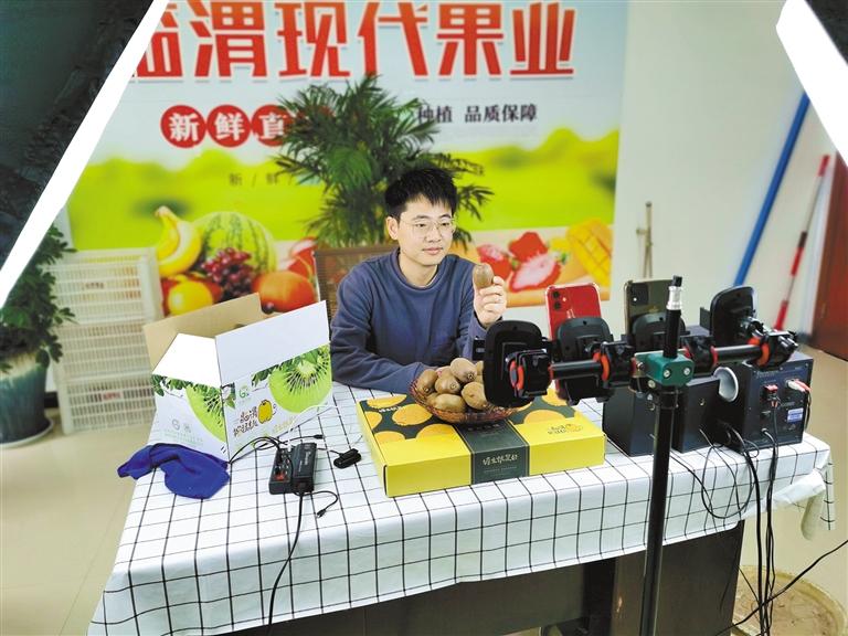 “各位直播間的朋友們,大家好,今天介紹的是我們臨渭區(qū)口感甜美的獼猴桃……”“這個獼猴桃個頭這么大,是什么品種?”“這個是‘龍珠異果’,旁邊的是‘紅陽’,這都是我們臨渭的高端獼猴桃品牌?!痹诘谌畬弥袊鴹盍柁r(nóng)業(yè)高新科技成果博覽會上,臨渭獼猴桃閃亮登場,與各地的果品“同臺競技”,以高品質(zhì)、高顏值獲得了參會嘉賓的認(rèn)可。